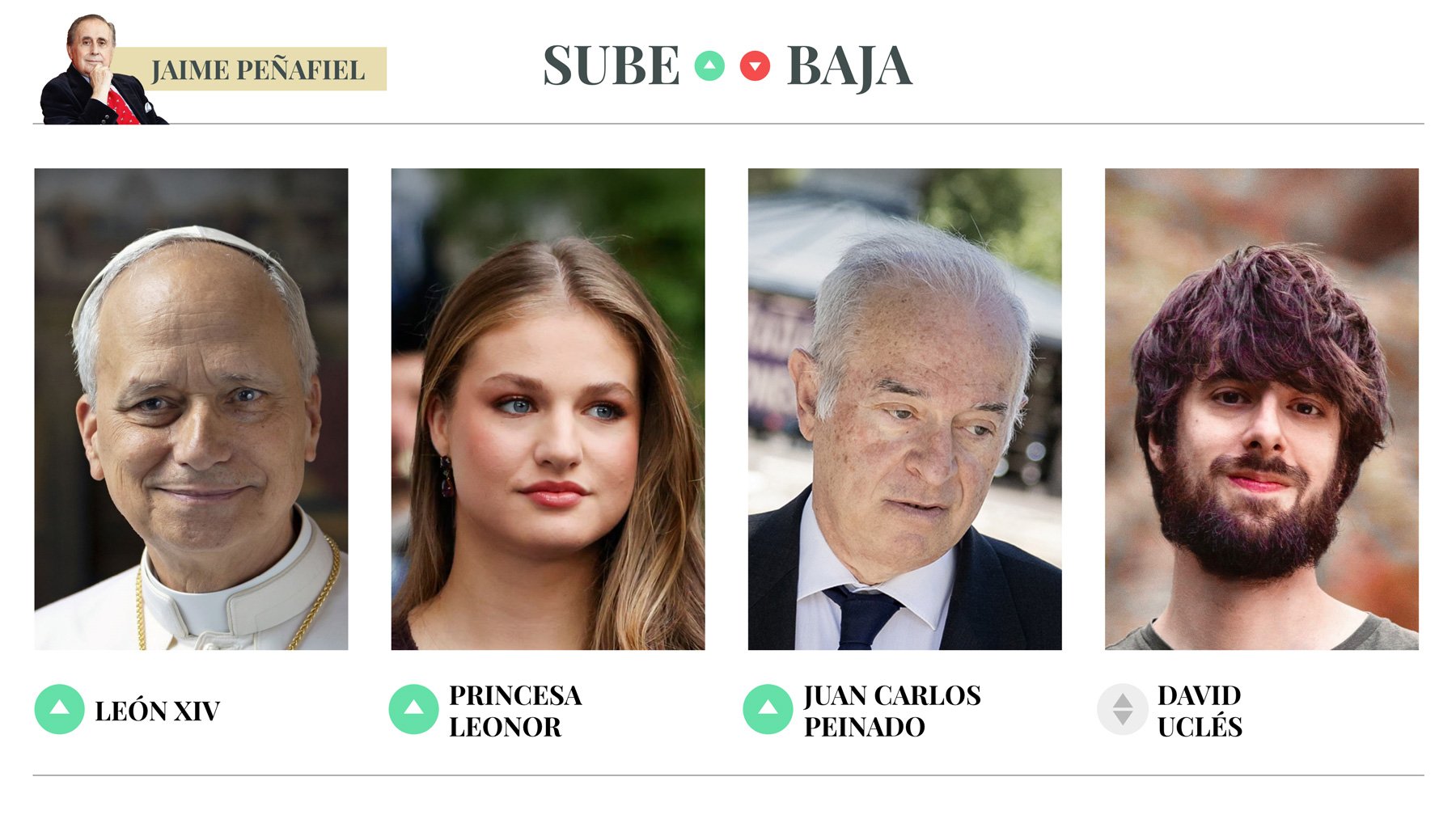 SUBE: León XIV Dos hitos marcan la anunciada visita del Papa a España: la audiencia mantenida en el Vaticano con el alcalde de Madrid, José Luis Martínez Almeida, y la reunión a la que han sido convocados en la Santa Sede el presidente de la Conferencia Episcopal, Luis Argüello, y los cardenales Juan José Omella … Continuar leyendo "Sube & Baja, por Jaime Peñafiel: semana del 3 al 9 de enero de 2026"