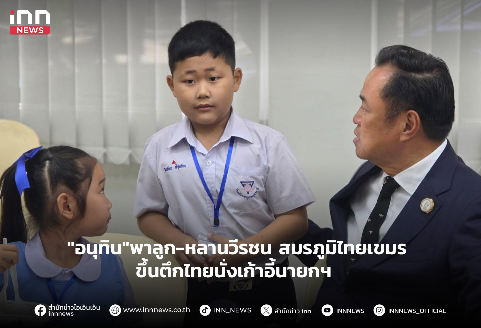 นายกฯลุงหนูพาลูก-หลานวีรชน สมรภูมิไทย -กัมพูชา ขึ้นตึกไทย นั่งเก้าอี้นายกฯ ขณะน้องภูผา ลูกชายจ่าจุ้ย หอบหมอนรูปพ่อร่วมเฟรมด้วย ก่อนร้องเพลงโปรดพ่อ “คิดถึง”