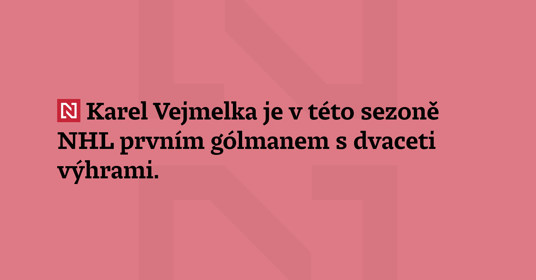 Karel Vejmelka je v této sezoně NHL prvním gólmanem s dvaceti výhrami....