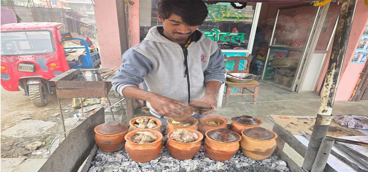 कटिया मासुले धेरैलाई लोभ्याउँदै गयो। आगोको भुंग्रोमा माटोको कटियामा पकाएको मासुको स्वाद बेजोड भन्दै ग्राहक ओइरिन थाले।