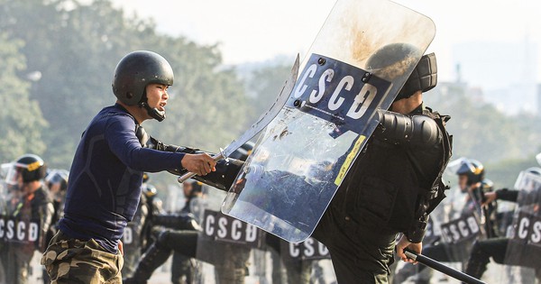 Tại Lễ xuất quân bảo vệ Đại hội Đảng lần thứ XIV, lực lượng cảnh sát diễn tập bắn súng, trấn áp tội phạm, thể hiện mức sẵn sàng cao trong bảo đảm an ninh, trật tự.
