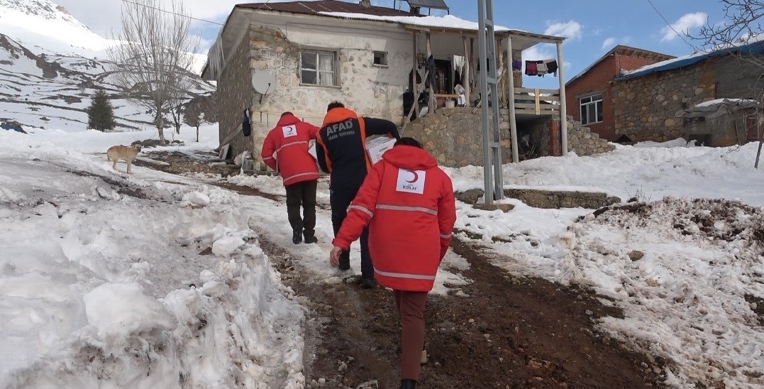 Tunceli'de etkisini artıran kış şartlarına rağmen Türk Kızılayı ve AFAD ekipleri, Ovacık ilçesinde ihtiyaç sahibi ailelere gıda kolisi ve battaniye desteği ulaştırdı.