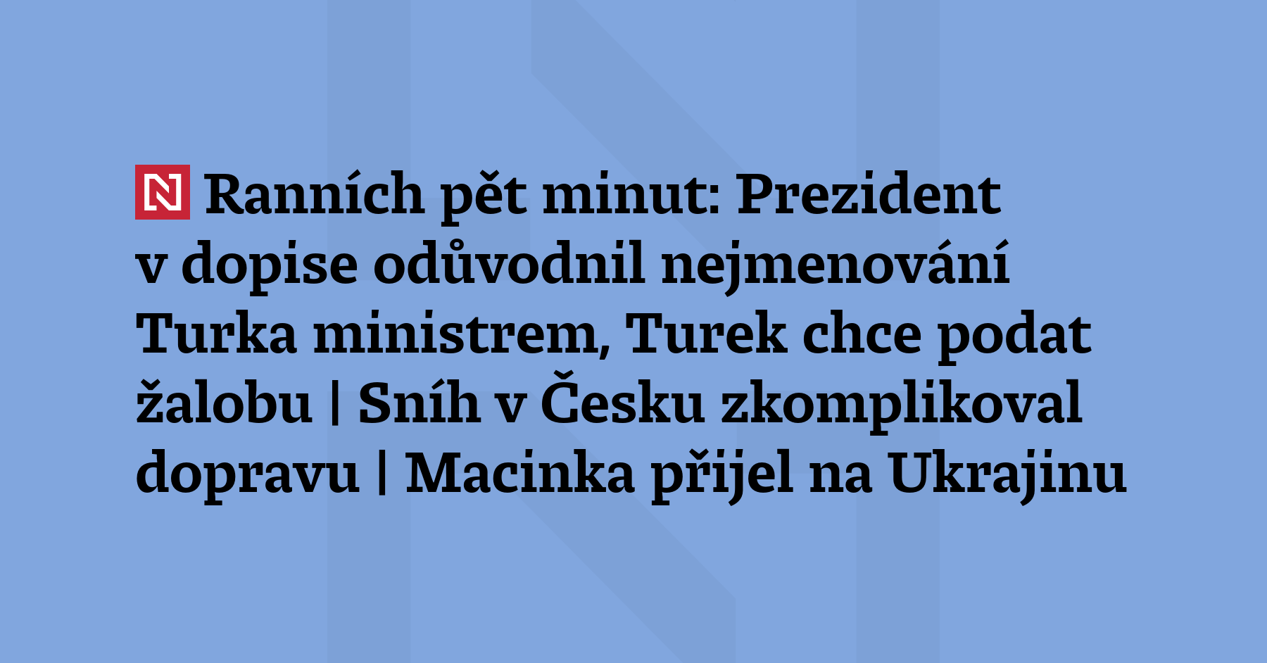 Ranních pět minut: Prezident v dopise odůvodnil nejmenování Turka ministrem, Turek chce podat žalobu | Sníh v Česku zkomplikoval dopravu | Macinka přijel na Ukrajinu