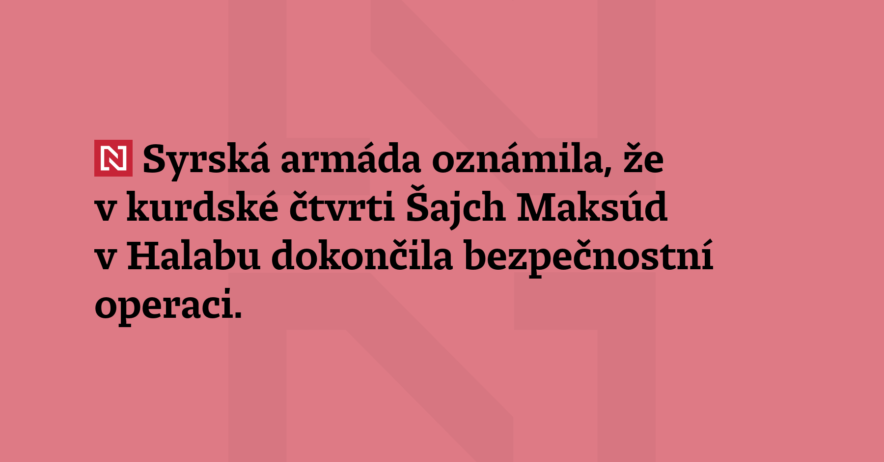 Syrská armáda oznámila, že v kurdské čtvrti Šajch Maksúd v Halabu dokončila bezpečnostní operaci. Podle kurdských sil čtvrť neovládla. Armáda vtrhla do poslední kurdské čtvrti v Aleppu poté, co kurdské skupiny odmítly požadavek vlády, aby se jejich bojovníci stáhli v rámci dohody o příměří. (Reuters)