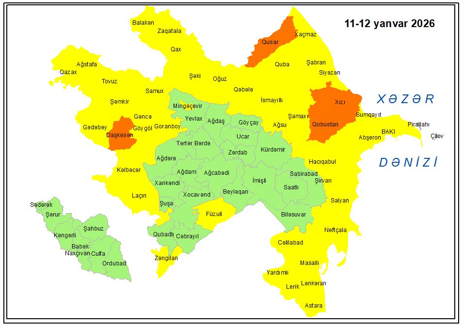 Küləkli hava ilə bağlı sarı və narıncı xəbərdarlıq verilib