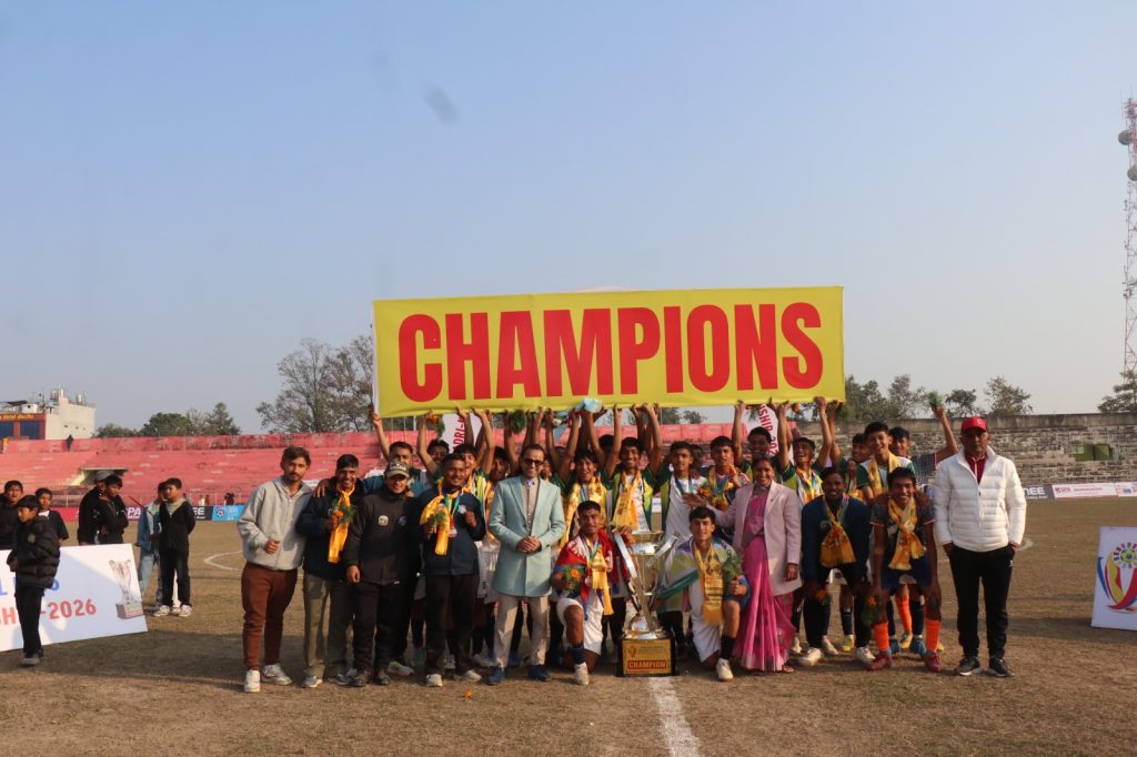 २६ पुस, काठमाडौं । कैलालीको धनगढीमा सम्पन्न बद्री कुन्ता मेमोरियल यु-१६ कैलाली जिल्लास्तरीय पुरुष फुटबल प्रतियोगिताको उपाधि संघर्ष स्पोर्टस क्लब गोदावरीले जितेको छ । धनगढी रंगशालामा सनिबार सम्पन्न खेलमा सहारा युवा क्लब पहलमानपुरलाई २-० ले पराजित गर्दै संघर्ष स्पोर्टस क्लब गोदावरीले उपाधिमाथि कब्जा जमाएको हो । संघर्षलाई उपाधि दिलाउन खेलको दोस्रो मिनेटमै राजेश नेपालीले गोल […]