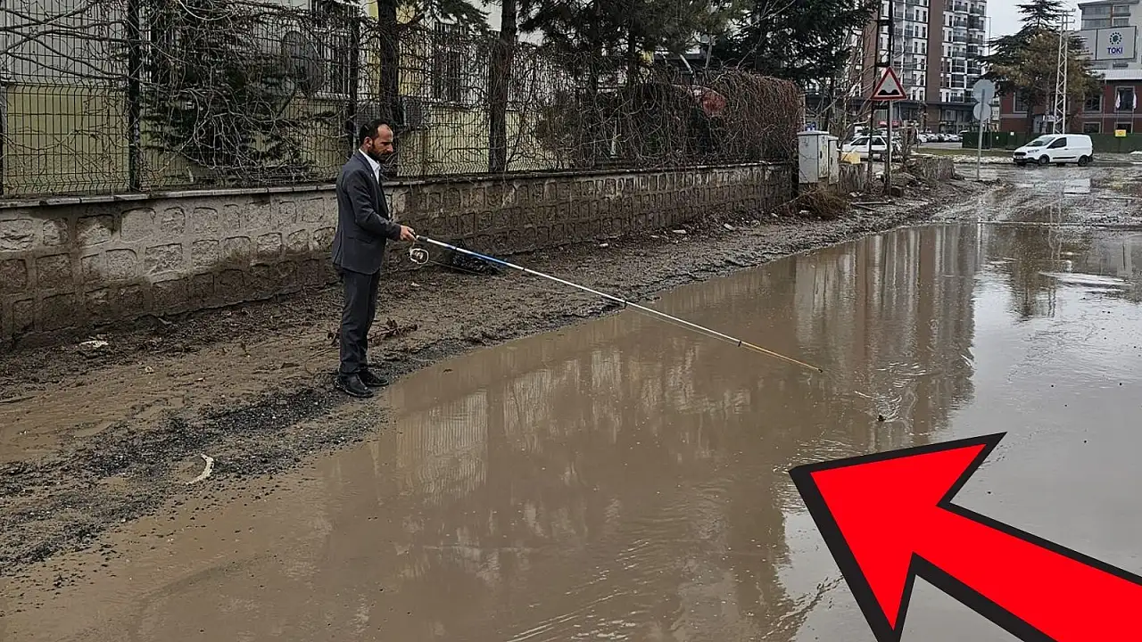 Sahabiye'de ilginç olay: Su birikintisine olta attı!