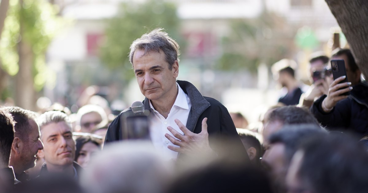 O πρωθυπουργός Κυριάκος Μητσοτάκης σε συγκέντρωση πολιτών στο Μοσχάτο, αμέσως μετά την κοπή της πρωτοχρονιάτικης πίτας των εργαζομένων της ΝΔ