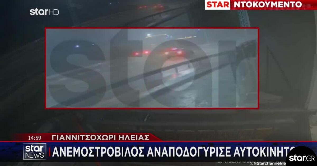 Απίστευτες εικόνες στο Γιαννιτσοχώρι Ηλείας, όπου ανεμοστρόβιλος αναποδογύρισε αυτοκίνητο. Αποκλειστικό βίντεο του STAR.