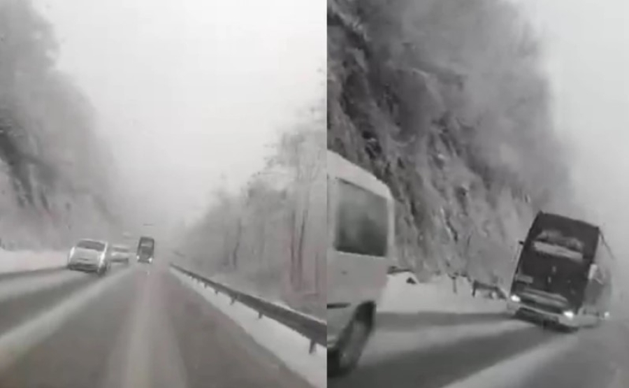 SNIMAK LEDI KRV U VENAMA: Autobus pretiče kolonu vozila i to na 'putu smrti'