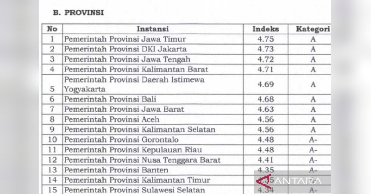 Provinsi Gorontalo mencatatkan prestasi gemilang dalam Indeks Pelayanan Publik (IPP) 2025, menempatkannya di 10 besar nasional sebagai daerah dengan layanan publik terbaik dan meraih predikat Sangat Baik.