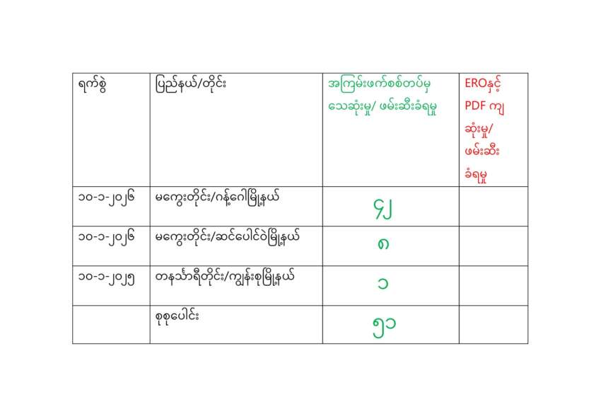 ရန်ကုန်၊ ဇန်နဝါရီ ၁၀ မြန်မာနိုင်ငံတစ်ဝန်း ဇန်နဝါရီလ ၁၀ ရက်နေ့ ရရှိထားသော အချက်အလက်များအရ စစ်ကောင်စီ တပ်ဖွဲ့ဝင် ၅၁ ဦး သေဆုံးကြောင်း ပြည်သူ့ကာကွယ်ရေးတပ်ဖွဲ့များ၏ ထုတ်ပြန်ချက်နှင့်ပြောဆို ချက်များအရ သိရှိရသည်။ ရန်ကုန်ခေတ်သစ်အနေဖြင့် နေ့စဉ် စစ်သား သေဆုံးမှု စာရင်းများကို ထုတ်ပြန် ရာတွင် ဒေသကာ ကွယ်ရေးတပ်ဖွဲ့များ၏ ထုတ်ပြန်ချက်များနှင့် ပြောဆိုချက် များကို စုစည်းဖော် ပြရခြင်းဖြစ်ပြီး မြေ ပြင် အခြေအနေတွင် အမှန်တကယ် စစ်သားများ သေဆုံးမှု ရှိ၊ မရှိ ကွင်းဆင်း အတည်ပြုနိုင်ခြင်း မရှိသည်ကို သိစေအပ်ပါသည်။ The post မြန်မာနိုင်ငံတစ်ဝန်း စစ်ကောင်စီတပ်ဖွဲ့ဝင် ၅၁ ဦးသေဆုံး appeared first on Khit Thit Media .