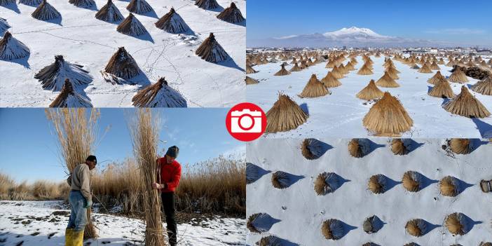 Türkiye'nin önemli sulak alanlarından Sultan Sazlığı Milli Parkı'nda yetişen kamışlar, soğuk havaya rağmen bölgede yaşayanlar tarafından hasat ediliyor. aa