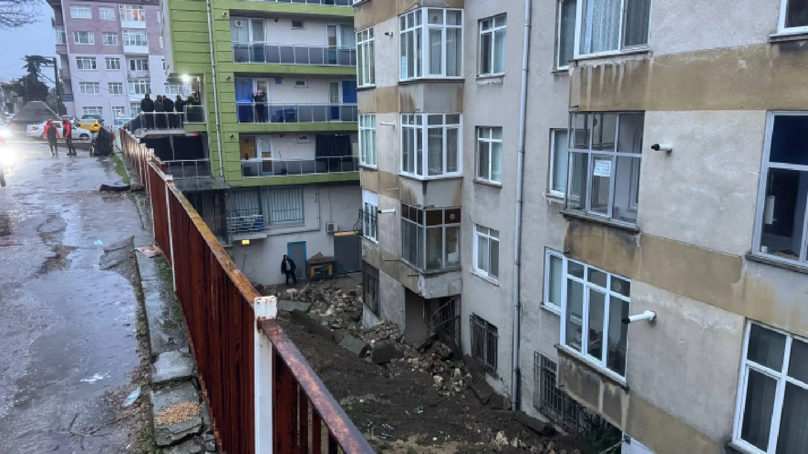 Edirne'de bir apartmanın istinat duvarı çöktü