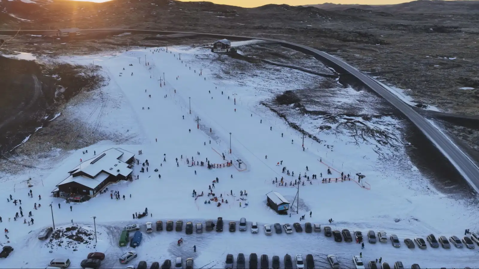 Þökk sé framleiddum snjó var hægt að opna byrjendasvæðið í Bláfjöllum í morgun. Vont að hafa engan snjó í janúar segir rekstrarstjóri en barnafólk flykktist í brekkurnar, þangað mættu í kringum þúsund manns í dag - enda langt síðan þar hefur verið opið. „Löngu kominn tími á þetta,“ segir Einar Bjarnason rekstrarstjóri Bláfjalla. Byrjendasvæðið var opið í dag. Snjóbyssurnar eru komnar í stóru brekkurnar og ef allt gengur að óskum er vonast til að hægt verði að opna stólalyftu næstu helgi. „Við renndum svolítið blint í snjóinn hvað það myndi koma af fólki og hérna er búið að vera traffík í allan dag, og óvenjulegt að sjá svona mikið af barnafólkið í staðinn fyrir þessa brettadúdda og stóru krakka,“ bætir hann við.
