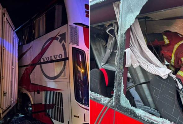Kemalangan melibatkan sebuah bas ekpres yang membawa 40 penumpang dan dua pemandu, dengan 38 penumpang berjaya keluar dengan selamat.