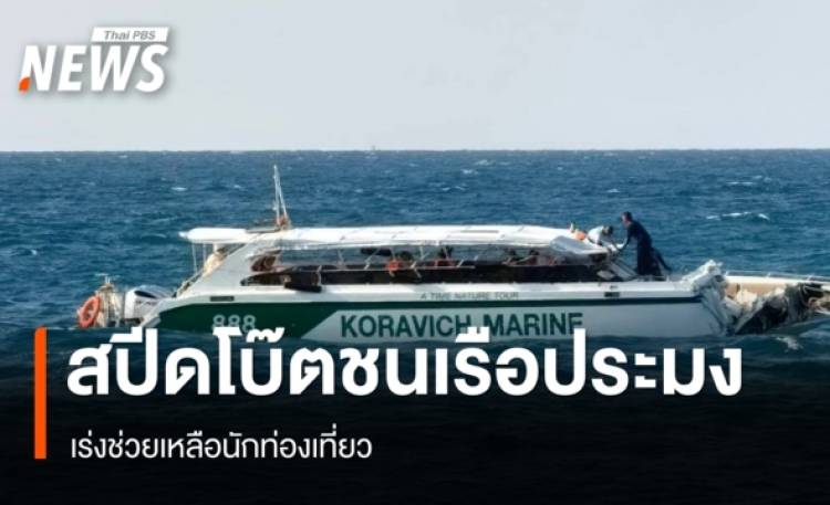วันนี้ (11 ม.ค.2569) สำนักงานป้องกันและบรรเทาสาธารณภัยจังหวัดภูเก็ต รายงานความคืบหน้าเหตุเรือชนกันในทะเลอันดามัน บริเวณเกาะไก่ ต.อ่าวนาง อ.เมืองกระบี่ จ.กระบี่ โดยเมื่อเวลาประมาณ 08.55 น. เกิดเหตุเรือสปีดโบ๊ตซึ่งมีนักท่องเที่ยวและลูกเรือรวมประมาณ 40 คน ชนกับเรืออวนลากในพื้นที่ดังกล่าว ภายหลังได้รับแจ้งเหตุ จังหวัดภูเก็ตได้บูรณาการการทำงานร่วมกับหน่วยงานที่เกี่ยวข้อง โดยศูนย์ช่วยเหลือนักท่องเที่ยว องค์การบริหารส่วนจังหวัดภูเก็ต (ศูนย์ไข่มุก) ได้เร่งนำเรือออกให้ความช่วยเหลือในพื้นที่เกิดเหตุ จำนวน 2 ลำ เพื่ออำนวยความปลอดภัย และรับตัวนักท่องเที่ยวพร้อมลูกเรือออกจากจุดเกิดเหตุอย่างเร่งด่วน ขณะเดียวกัน สำนักงานเจ้าท่าภูมิภาคสาขาภูเก็ต รายงานว่า หลังจากได้รับแจ้งจากเครือข่ายศูนย์เฝ้าระวังทางน้ำ เกิดเหตุเรือสปีดโบ๊ตชื่อ กรวิชญ์ มารีน 888 ขนาด 23.18 ตันกรอส มีคนบนเรือรวม 55 คน โดยเป็นลูกเรือ 3 คน ผู้โดยสาร 52 คน ชนกับเรือประมงชื่อ พิชัยสมุทร 1 ขณะทำการประมง บริเวณเกาะพีพี จ.กระบี่ จากการตรวจสอบเบื้องต้น พบว่าผู้โดยสารบางส่วนได้รับบาดเจ็บ และได้รับการช่วยเหลือแล้ว ขณะนี้อยู่ระหว่างการนำนักท่องเที่ยวและลูกเรือทั้งหมดเดินทางกลับเข้าฝั่ง โดยเรือกรวิชญ์ มารีน 888 ได้รับความเสียหาย จำนวน 1 ลำ ส่วนเรือพิชัยสมุทร 1 ไม่พบความเสียหาย และไม่พบผลกระทบต่อสิ่งแวดล้อมแต่อย่างใด ในส่วนของสถานการณ์ล่าสุด หน่วยงานที่เกี่ยวข้องอยู่ระหว่างการช่วยเหลือและนำนักท่องเที่ยวพร้อมลูกเรือกลับขึ้นฝั่งบริเวณท่าเทียบเรืออ่าวฉลอง โดยจังหวัดภูเก็ตได้ติดตามสถานการณ์อย่างใกล้ชิด พร้อมประสานทุกภาคส่วนเพื่อดูแลความปลอดภัยของนักท่องเที่ยวอย่างเต็มที่ อ่านข่าว : เปิดภาพวงจรปิดลอบวางระเบิดปั๊ม 11 จุด 3 จังหวัดใต้ - นราฯ ตร.เจ็บ 1 นาย กทม.ฝุ่น PM 2.5 อยู่ในระดับสีส้ม 26 เขต "ปทุมวัน" เยอะสุด