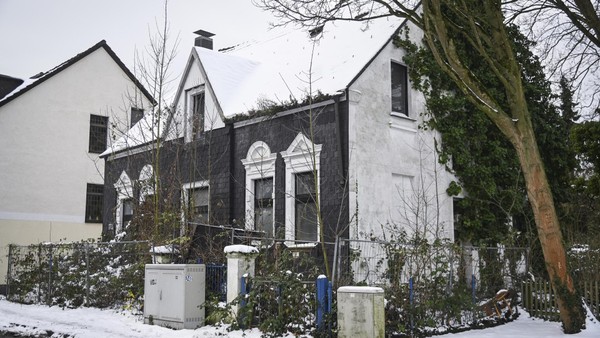 In Broich verfällt ein ehemaliges Wohnhaus sichtbar; ein Bauzaun sichert das Gelände. Die Stadt greift aus einem bestimmten Grund nicht ein.