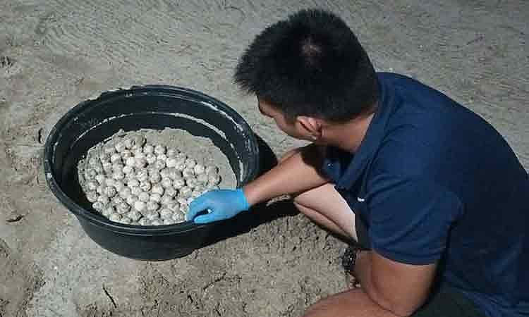 DENR-Davao relocates 97 Olive Ridley eggs from a high-traffic resort to the Mabini Protected Seascape hatchery for safety.