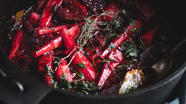 In Schweden köchelt man diesen Schmortopf gern draußen überm Winterfeuer. Aber er schmeckt auch vom Küchenherd. Die Schneehaube braucht’s trotzdem – aus Crème fraîche.