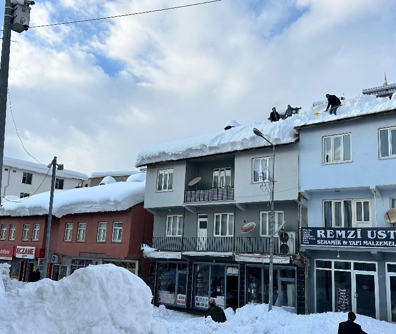 Beytüşşebap ilçesinde yoğun yağış sonrası çatılarda biriken karlar tehlike oluşturdu. Belediye uyarılarda bulunurken, bazı bina sahipleri çatılardaki karları temizledi.
