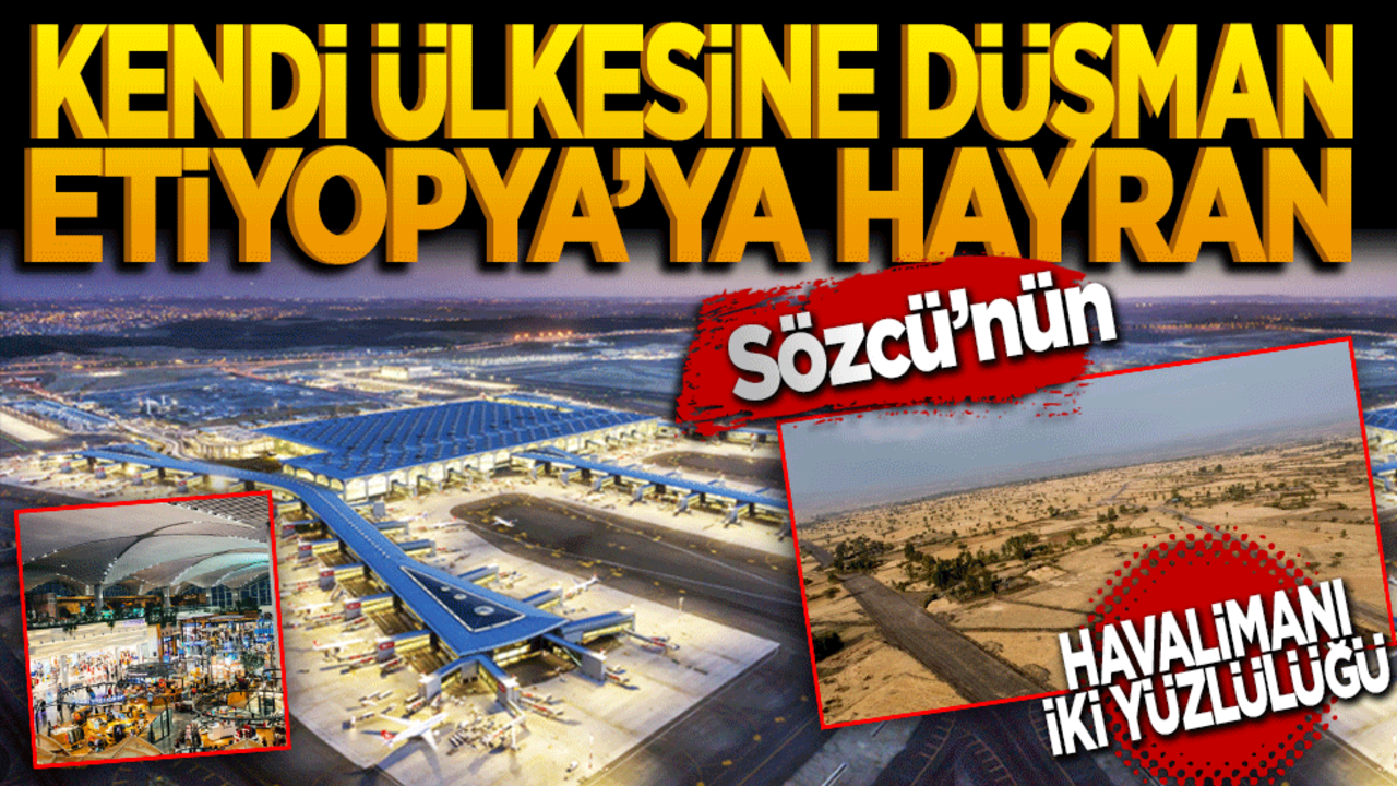 Türkiye’nin milli projelerine karşı her fırsatta "İstemezük" korosuyla saldırıya geçen Sözcü gazetesi, konu başka ülkeler olunca adeta medeniyet havarisi kesiliyor. İstanbul Havalimanı yapılırken "Rüzgar var", "Doğa katlediliyor", "Müsriflik yapılıyor" yalanlarıyla sokakları provoke etmeye çalışan malum gazete, Etiyopya’daki havalimanı projesini göklere çıkardı.