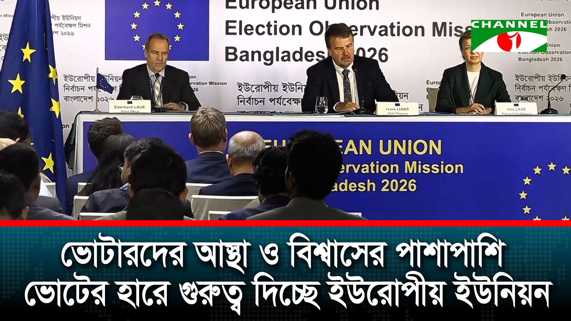 বাংলাদেশের আসন্ন সংসদ নির্বাচন পর্যবেক্ষণে ভোটারদের আস্থা ও বিশ্বাস ফেরানোর পাশাপাশি সন্তোষজনক ভোটের হারে গুরুত্ব দিচ্ছে ইউরোপীয় ইউনিয়ন। ইইউ নির্বাচন পর্যবেক্ষক দলের প্রধান ইভার্স ইজাবস বলেছেন, আইন শৃঙ্খলা পরিস্থিতিতে থাকবে নজরদারি। তিনি বলেন, স্বাধীনতা, নিরপেক্ষতা ও হস্তক্ষেপহীনতা এই তিন নীতির ওপর ভিত্তি করে নির্বাচন পর্যবেক্ষণ করবে ইউরোপীয় ইউনিয়ন। The post বাংলাদেশের আসন্ন সংসদ নির্বাচন পর্যবেক্ষণে ইউরোপীয় ইউনিয়ন appeared first on চ্যানেল আই অনলাইন .