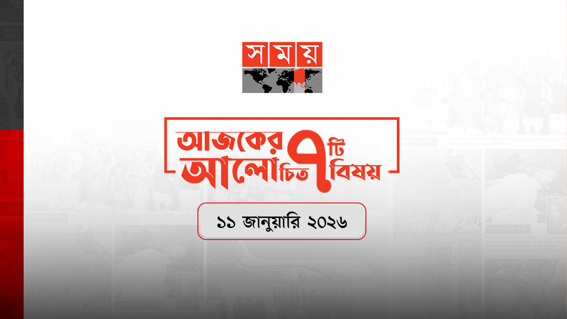 দেশের শীর্ষ জনপ্রিয় টেলিভিশন চ্যানেল সময় টিভি। টেলিভিশনটির অনলাইন সংস্করণ ‘সময় নিউজে’ রোববার (১১ জানুয়ারি) প্রকাশিত সেরা সাতটি আলোচিত খবর পাঠকদের জন্য তুলে ধরা হলো।নির্বাচনের পর কী করবেন প্রধান উপদেষ্টা, জানালেন নিজেই জাপানের সাবেক প্রধানমন্ত্রী শিনজো আবের স্ত্রী আকি আবের সঙ্গে সাক্ষাতে নির্বাচন পরবর্তী সময়ে নিজের পরিকল্পনার কথা জানিয়েছেন প্রধান উপদেষ্টা অধ্যাপক মুহাম্মদ ইউনূস। নির্বাচন-পরবর্তী সময়ে তিনি মূলত তিনটি বিষয়ে গুরুত্ব দিয়ে কাজ করবেন বলে জানিয়েছেন। বিস্তারিত পড়তে এখানে ক্লিক করুন। ইরানে মসজিদে আগুন, বিক্ষোভকারীদের হামলায় নিরাপত্তা বাহিনীর ১০৯ সদস্য নিহত! ইরানে চলমান বিক্ষোভে নিরাপত্তা বাহিনীর বহু সদস্য নিহত হয়েছেন বলে জানিয়েছে দেশটির রাষ্ট্রীয় গণমাধ্যম। এর মধ্যেই ইরানের পার্লামেন্ট স্পিকার সতর্ক করে বলেছেন, যুক্তরাষ্ট্র তেহরানে হামলা চালালে ওয়াশিংটন ও ইসরাইলের বিরুদ্ধে পাল্টা হামলা চালানো হবে। বিস্তারিত পড়তে এখানে ক্লিক করুন। মুসাব্বিরকে হত্যার কারণ জানালেন ডিএমপির ডিবিপ্রধান রাজধানীর কারওয়ান বাজারে ব্যবসা নিয়ে দ্বন্দ্বের জেরে ঢাকা মহানগর উত্তর স্বেচ্ছাসেবক দলের সাবেক সদস্য সচিব আজিজুর রহমান মুসাব্বিরকে হত্যা করা হয়েছে বলে জানিয়েছেন ডিএমপির ডিবি প্রধান মো. শফিকুল ইসলাম। বিস্তারিত পড়তে এখানে ক্লিক করুন। সিলেটে প্রকাশ্যে অত্যাধুনিক অস্ত্রের মহড়া, নির্বাচন ঘিরে নিরাপত্তা শঙ্কা সিলেট অঞ্চলের বিভিন্ন এলাকায় গত কয়েক বছরে নানা উত্তেজনায় প্রকাশ্যে অস্ত্রের মহড়া হয়েছে। পাশাপাশি ২০২৪ এর আগস্টে সরকার পতনের আন্দোলনের সময় থানা থেকে লুট হওয়া অস্ত্র এখনও উদ্ধার হয়নি। এ অবস্থায় আগামী জাতীয় নির্বাচনে নাগরিক নিরাপত্তা বিঘ্নিত হতে পারে বলে আশঙ্কা নাগরিক সমাজের প্রতিনিধিদের। তবে, নির্বাচনের আগেই শান্তিপূর্ণ পরিবেশ নিশ্চিতে সব অস্ত্র উদ্ধারে অভিযান চলছে বলে জানিয়েছে আইনশৃঙ্খলা বাহিনী। বিস্তারিত পড়তে এখানে ক্লিক করুন। ইশতেহারে সিন্ডিকেটমুক্ত বাজারের প্রতিশ্রুতির দাবি, কী বলছে রাজনৈতিক দলগুলো? নির্বাচন সামনে রেখে সিন্ডিকেটমুক্ত বাজার ব্যবস্থাপনার দাবি উঠছে নানা মহলে। বিশেষ করে ভোক্তা অধিকার নিয়ে কাজ করা সংগঠনগুলো রাজনৈতিক দলগুলোর নির্বাচনী ইশতেহারে সিন্ডিকেটমুক্ত বাজারের সুস্পষ্ট প্রতিশ্রুতি দেখতে চায়। নতুন বাস্তবতায় বিষয়টিকে গুরুত্ব দিচ্ছে রাজনৈতিক দলগুলোও। বিস্তারিত পড়তে এখানে ক্লিক করুন। হাইকোর্টের রুল/ নির্বাচনে জাতীয় পার্টি ও এনডিএফের প্রার্থীদের প্রার্থিতা কেন অবৈধ নয় ত্রয়োদশ জাতীয় সংসদ নির্বাচনে জাতীয় পার্টি (জিএম কাদের) এবং জাতীয় পার