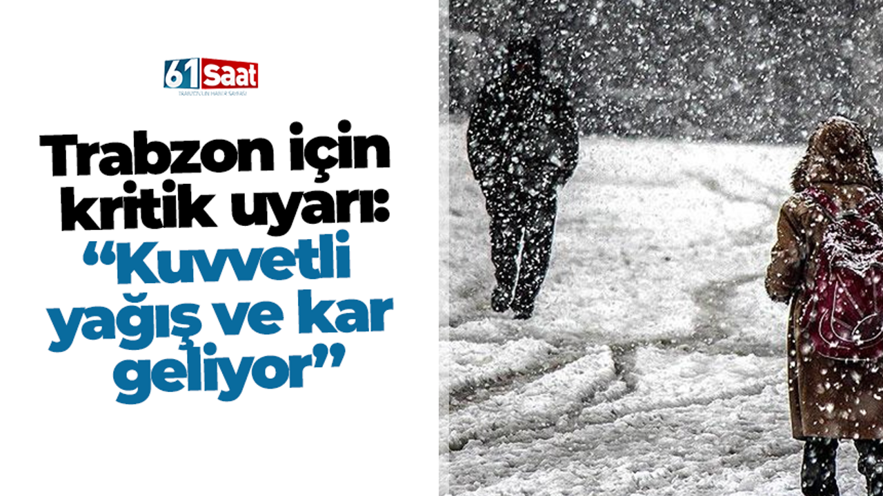 Meteoroloji Genel Müdürlüğü, Orta ve Doğu Karadeniz için kuvvetli yağış ve kar uyarısında bulundu. 11 Ocak 2026 tarihinden itibaren Trabzon, Giresun ve Rize illerinin iç kesimlerinin yanı sıra Gümüşhane ve Bayburt çevrelerinin de etkisi altında olması beklenen yoğun yağış ve kar hakkında vatandaşlar uyarıldı.