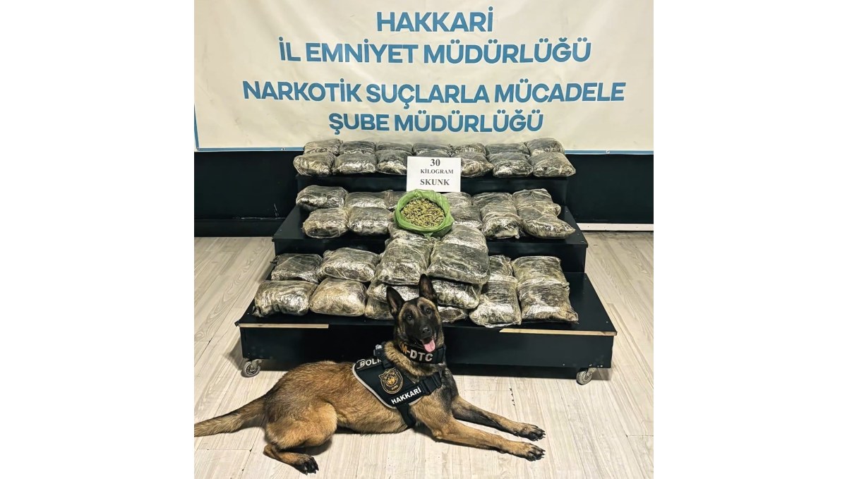 Hakkari'nin Yüksekova ilçesinde hafif ticari kapalı kasa kamyonette yapılan aramada 30 kilogram skunk maddesi ele geçirilirken, olayla ilgili 2 şüpheli gözaltına alındı.