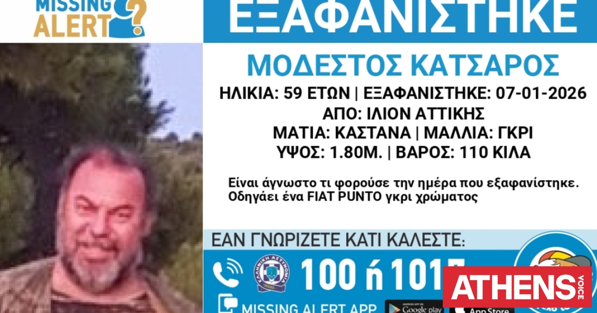 Συναγερμός για την εξαφάνιση 59χρονου από το Ίλιον Αττικής
