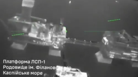 FOTO UN VIDEO ⟩ Ukraina veikusi triecienu urbšanas iekārtām Kaspijas jūrā