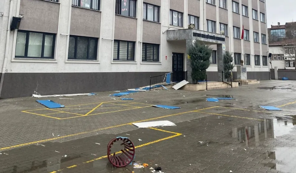 i̇negöl’de etkili olan şiddetli rüzgâr (lodos), bir okulda büyük hasara yol açtı.