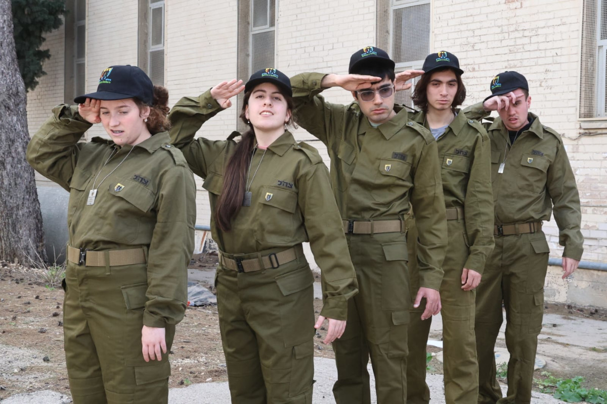 במרכז רחבת המסדרים בבסיס האספקה של צה"ל בטירת כרמל עמדו תלמידים על הרצף האוטיסטי מתיכון "ליאו באק" בחיפה - אלא כחיילים לובשי מדים, כחלק בלתי נפרד מצבא ההגנה לישראל