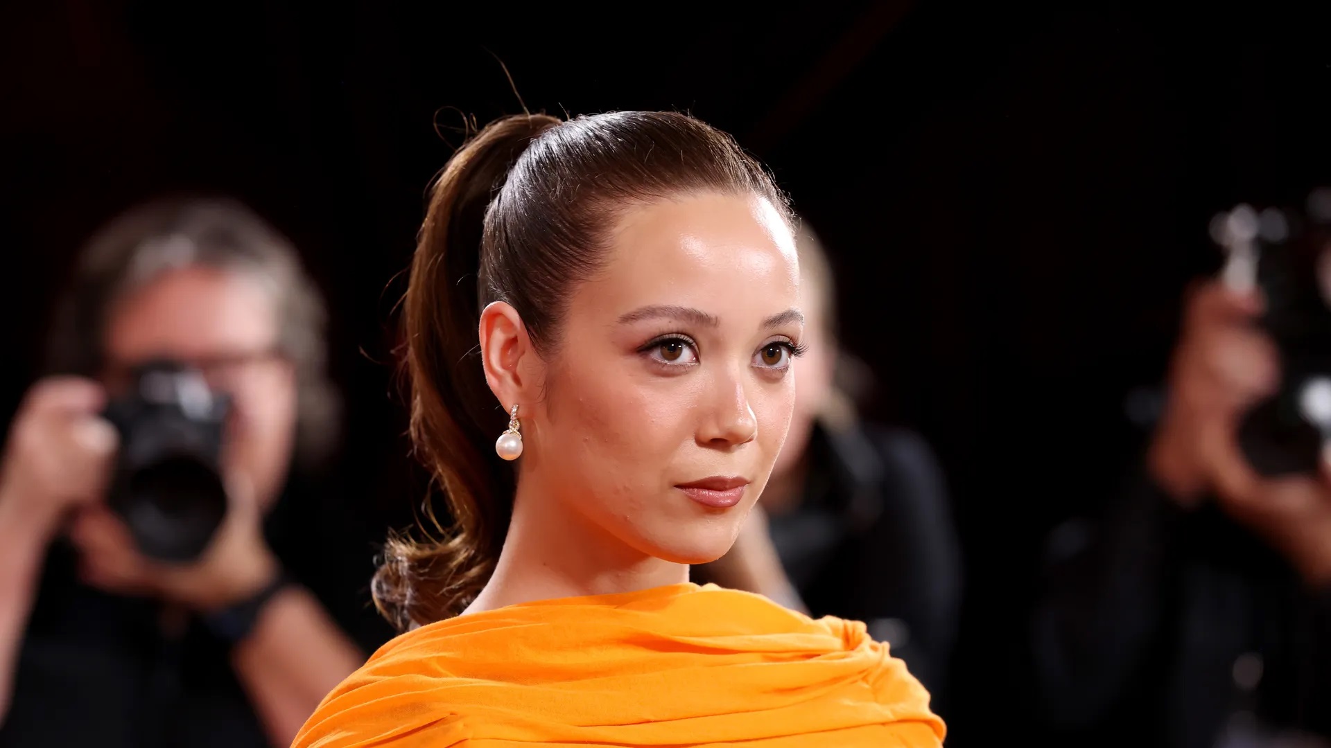 Tónlistarkonan Laufey Lín Bing Jónsdóttir er mætt á rauða dregil Golden Globes. Laufey er stórglæsileg í appelsínugulum kjól frá Balenciaga og prýðir meðal annars forsíðumynd Teen Vogue, yfir rauða dregilinn.