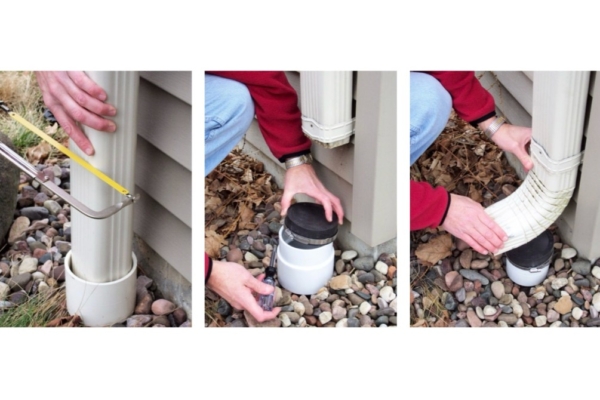 断开雨水管三步骤:切断雨水管;把下面的污水管封口;把上面的雨水管改道。(Courtesy of NYC DEP)