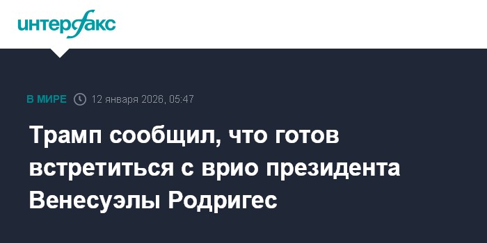 Президент США Дональд Трамп сообщил, что готов к встрече с временно исполняющей обязанности президента Венесуэлы Делси Родригес."В какой-то момент я это сделаю. (...) Мы очень хорошо сотрудничаем с руководством, и посмотрим, как все сложится", - сказал Трамп журналистам на борту самолета.