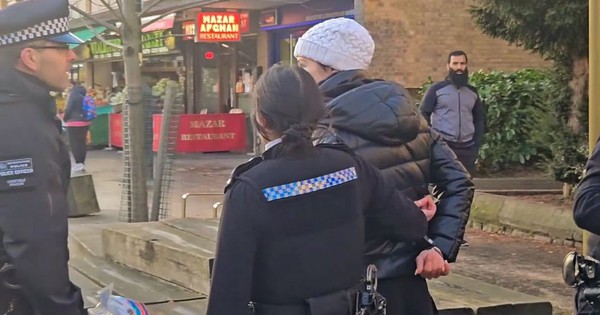Người phụ nữ bị cảnh sát lục soát người, bắt giữ vì cho chim bồ câu trên phố ăn