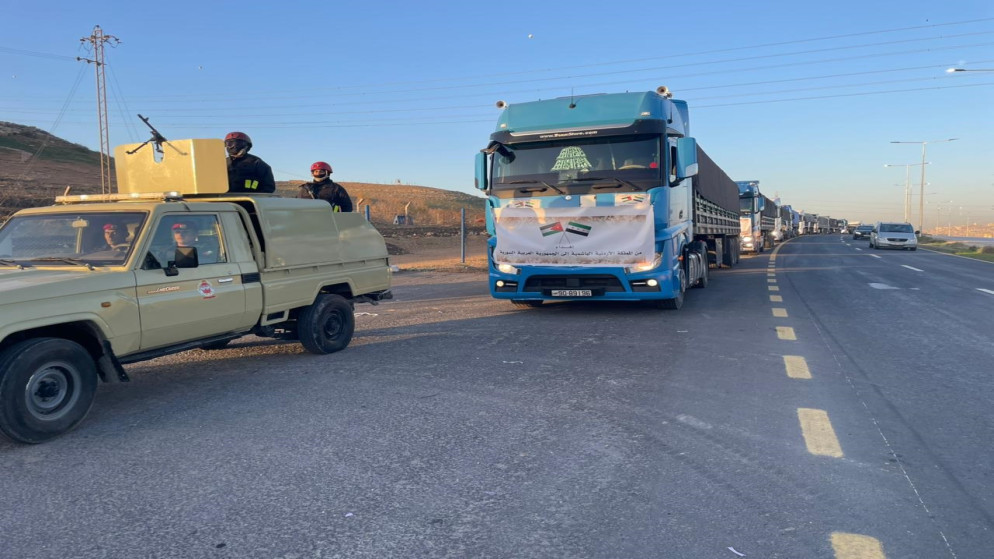 بتوجيهات ملكية سامية، سيّرت القوات المسلحة الأردنية، الاثنين، قافلة مساعدات إنسانية وغذائية إلى الجمهورية العربية السورية الشقيقة، بالتنسيق مع وزارة الخارجية وشؤون المغتربين. وتحمل القافلة، المكوّنة من (51) شاحنة، مواد غذائية أساسية ومستلزمات إغاثية، في إطار الدور ال...