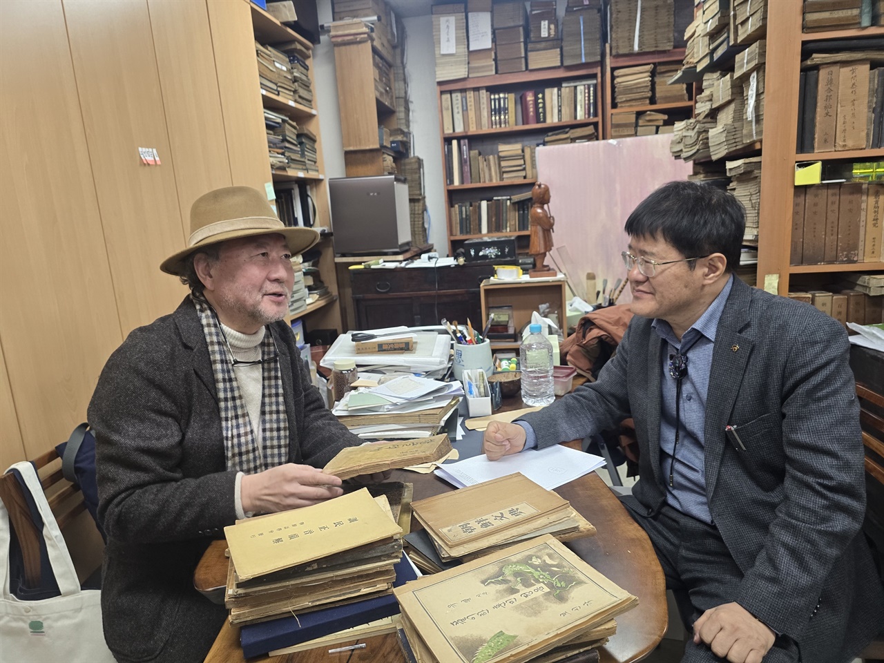 KBS <진품명품>의 옛책 명품 감정가로 친숙한 김영복 선생이 직접 운영하는 인사동 '문우서림'. 지난 8일 그 문을 열고 들어서자 옛책의 향기가 물씬 밀려왔다. 십여 년 전 어느 발표장에서 멀리 뵌 적은 있지만 이렇게 마주 앉기는 처음인데도, 선생은 오랜 벗을 맞듯 반겨주셨다. 덕분에 인사도 채 마치기 전에 옛책 이야기 속으로 빠져들었다. 올해로 인사동 통문관에서 고서와 인연을 맺은 지 꼭 50년, 자신의 가게 문우서림을 연 지 35년이 되었다는 김영복 선생. '인사동 터줏대감'이자 '문화재급 인간 도서관'이라는 별명이 괜히 붙은 게 아니었다. 이번에 펴낸 <옛것에 혹하다>(돌베개)는 <법률신문>에 7년간 연재한 '고미술 이야기' 칼럼을 바탕으로, 고서와 고서화에 얽힌 비화 그리고 그 속에 담긴 사람들의 이야기를 한 권에 엮은 것이다. 추사 김정희의 가품에 속아 전 재산을 날린 20대의 실패담부터, 폐지 수레에 실려 사라질 뻔한 다산의 <하피첩>, 안중근 의사가 순국 직전 남긴 비장한 유묵, 그리고 사대부의 한글 편지와 궁중 서사상궁의 봉서에 이르기까지, 반세기 현장 경험에서 길어 올린 이야기들이 켜켜이 쌓여 있다. 옛것에 깃든 사람의 숨결을 전해 듣는 시간이었다. 미술품에 담긴 사람과 정신 - 책의 시작부터 '가품(짝퉁) 추사 대련'을 사서 큰돈을 날린 실패담을 솔직하게 공개하신 점이 인상적이었습니다. "20대 초반, 패기만 믿고 3~4년 모은 돈을 털어 추사 김정희의 대련을 샀는데 가품이었습니다. 그때는 다리가 후들거릴 정도로 낙담했지만, 그 일을 계기로 추사 글씨를 깊이 연구하게 되었으니 비싼 수업료를 낸 셈이지요. 저는 고미술을 수집하는 사람들에게 세 가지를 강조합니다. 첫째는 사람에게 배우고, 둘째는 깊이 공부하며, 셋째는 권하는 사람보다 작품 그 자체의 가치를 믿으라는 것입니다." - 이 책에는 다산 정약용의 <하피첩> 이야기가 매우 감동적으로 그려져 있습니다. "네, <하피첩>은 다산이 강진 유배 시절, 부인이 보내준 헌 치마를 잘라 만든 서첩입니다. 다산은 그 치마에 두 아들과 손자에게 전하는 교훈을 적었는데, 아버지의 엄격함과 가족에 대한 따뜻한 사랑이 동시에 담겨 있습니다. 이 첩은 한때 파지를 줍는 할머니의 수레에 실려 사라질 뻔했다가 극적으로 발견되어 보물로 지정되었는데, 이런 극적인 사연들이 고미술의 매력입니다." - 선생님은 추사 김정희 전문가로도 유명하신데, 책에서 추사와 관련된 흥미로운 일화도 많이 소개하셨더군요. "추사의 작품 중 <소영은>, <복초재시집>, <죽재·화서 대련>이 흩어졌다가 2010년 경매를 통해 다시 한자리에 모인 일이 기억에 남습니다. 추사가 스승 옹방강의 시집을 해남 대흥사에 보관하게 한 사연과 초의선사와의 깊은 우정이 담긴 유물들인데, 이 재회를 중개하면서 큰 보람을 느꼈습니다. 예술품에는 영원한 주인이 없고, 물건은 결국 아끼는 사람에게 가게 된다는 '물각유주(物各有主)'의 이치를 다시금 깨달았죠." - 책을 보니 단순한 미술품 소개가 아니라 그 속에 담긴 '사람'과 '정신'을 강조하시는 것 같습니다. 안중근 의사의 유묵 이야기도 그렇고요. "맞습니다. 저는 '잘 쓴 글씨'보다 '좋은 글씨'가 따로 있다고 생각합니다. 안중근 의사가 순국 직전 여순 감옥에서 쓴 '세심대(洗心臺)' 같은 글씨는 기교를 넘어선 비장미와 뜨거운 기상이 서려 있어 최고의 서예가도 따를 수 없는 경지입니다. 또한, 병자호란 때 척화파 김상헌과 주화파 최명길이 심양 감옥에서 시를 주고받으며 서로를 이해하게 된 육필 시고를 보면, 옛 선비들의 진솔한 우정과 고뇌가 생생하게 느껴집니다." - 잘 알려지지 않은 역사적 인물이나 잊힌 문화를 발굴하는 데도 힘쓰셨는데, 독자들에게 꼭 소개하고 싶은 발견이 있다면요? "조선 시대 목판본 중 가장 훌륭한 책으로 꼽고 싶은 <완구유집>을 들 수 있습니다. 완구 신대우의 아들 신작이 당시에 연구하던 한나라 예서체로 직접 글씨를 써서 판각한 것인데, 그 예술성이 탁월합니다. 또, 우리 역사 최초의 연극 대본인 <동상연의>나 다석 유영모 선생이 쓴 우리말 과학책 <도량형신제 메트르요항> 같은 자료들도 그 시대의 시대정신과 지식인의 고뇌를 보여주는 소중한 사료들입니다." 전체 내용보기