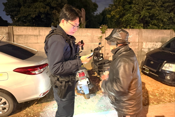 警员张智淇、黄茂睿调阅沿线监视器画面,发现游伯伯最后一次骑乘机车是在4天前,最后身影出现在中坜区环中东路二段一带,警方随即陪同游伯伯前往现场逐一确认,最终顺利找回机车。(桃园市中坜警分局提供)