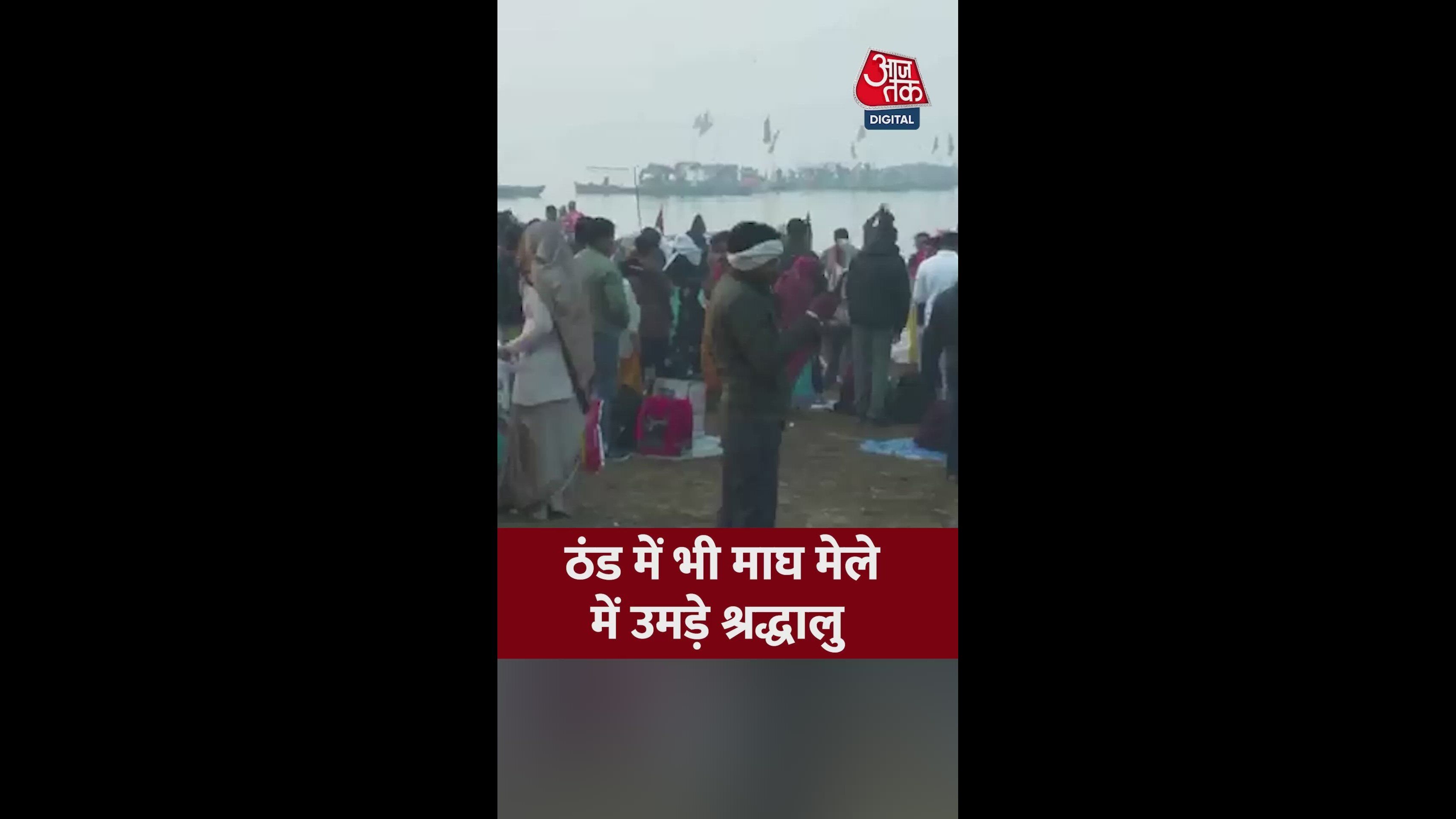 कड़ाके की ठंड के बीच माघ मेले में उमड़े श्रद्धालु