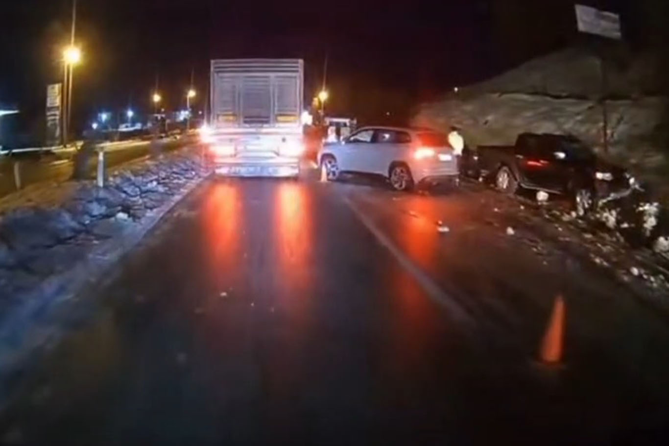 Li navçeya Sûrê ya Dîyarbekirê, ji ber qeşaya reş qezayek trafîkê ya zincîrî ya sê wesayîtan pêk hat, di encamê de du kes bi sivikî birîndar bûn.