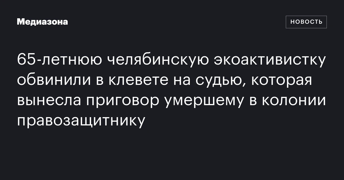 65‑летнюю челябинскую экоактивистку обвинили в клевете на судью, которая вынесла приговор умершему в колонии правозащитнику