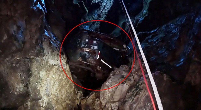 ANTALYA'da ekstrem spor videoları çeken sanal medya ünlüsü Ozan Kuşçu (25), İbradı ilçesinde iniş yaptıkları mağarada, çürümeye başlayan bir otomobille karşılaştı. Aracı görünce büyük şaşkınlık yaşayan Kuşçu, o anları kaydetti.