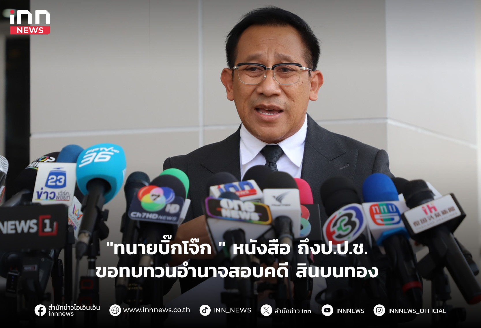 “ทนายความบิ๊กโจ๊ก” ยื่นหนังสือถึง ป.ป.ช. 6 ข้อ ให้ทบทวนอำนาจสอบคดี สินบนทอง ชี้ ขั้นตอนการสืบสอบสวนผิดมาตั้งแต่ชั้นตำรวจ เหตุมีกรรมการ ป.ป.ช.ตกเป็นผู้ถูกกล่าวหาด้วย