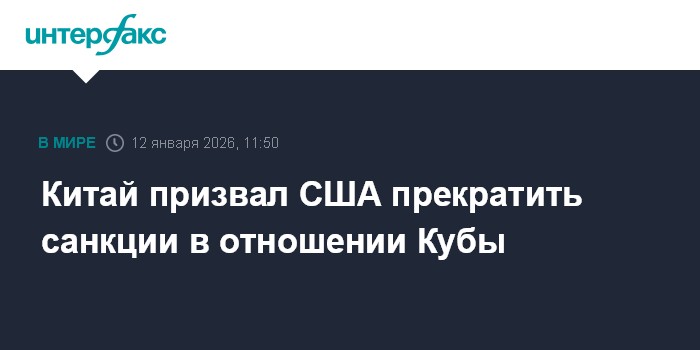 Пекин поддерживает власти Кубы в защите суверенитета и призывает США прекратить оказывать давление на Гавану, заявила в понедельник представитель МИД КНР Мао Нин."Китай решительно поддерживает Кубу в защите ее национальных суверенитета и безопасности, а также выступает против внешнего вмешательства, призывая США немедленно прекратить блокаду, санкции и любую форму давления на Кубу", - приводит ее слова Global Times.