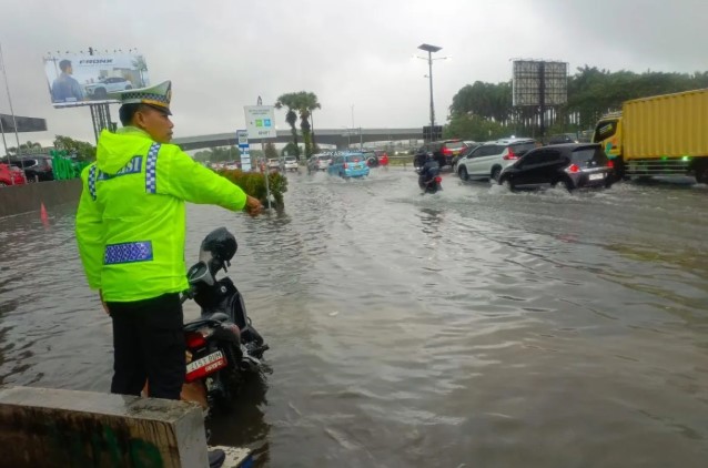 Genangan Air Terjadi di Akses Jalan Menuju Bandara Soekarno-Hatta, Lalu Lintas Terkendala