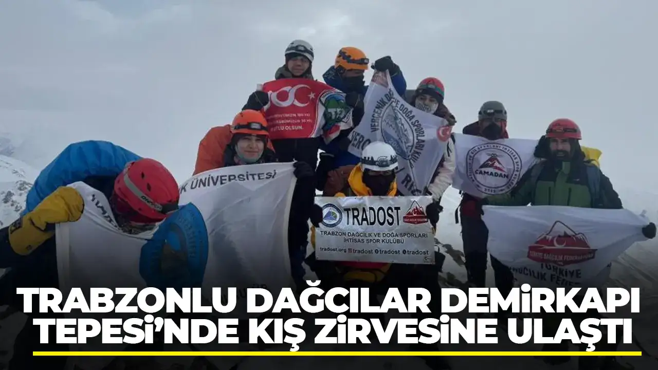Trabzonlu dağcılar, Çaykara Uzungöl üzerinden ulaştıkları Demirkapı Tepesi’nde zorlu kış şartlarında gerçekleştirdikleri zirve tırmanışını sorunsuz şekilde tamamladı.