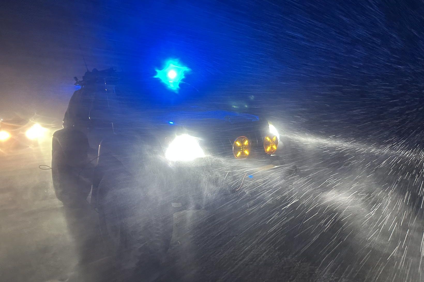 Gular viðvaranir eru í gildi vegna hríðar og hvassviðris á Suðurlandi, Suðausturlandi, Austfjörðum, Austurlandi að Glettingi og á Miðhálendinu.
